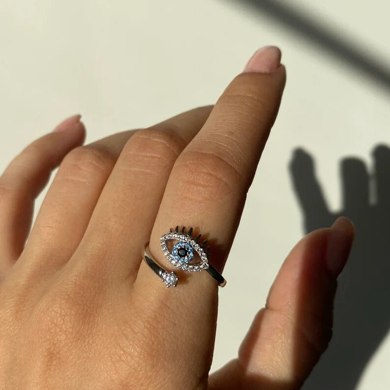 💖 Turkish evil eye ring to protect from evil and bad energy. The lucky pendant protects you, your family, and friends. There is nothing more stunning than an elegant piece of jewelry — and this is exactly what an evil eye ring brings to you for fashion. Their minimalist design brings out the beauty in the simplest of things, such as the artistry of the curved ring and the brilliance of the metal it was made from.