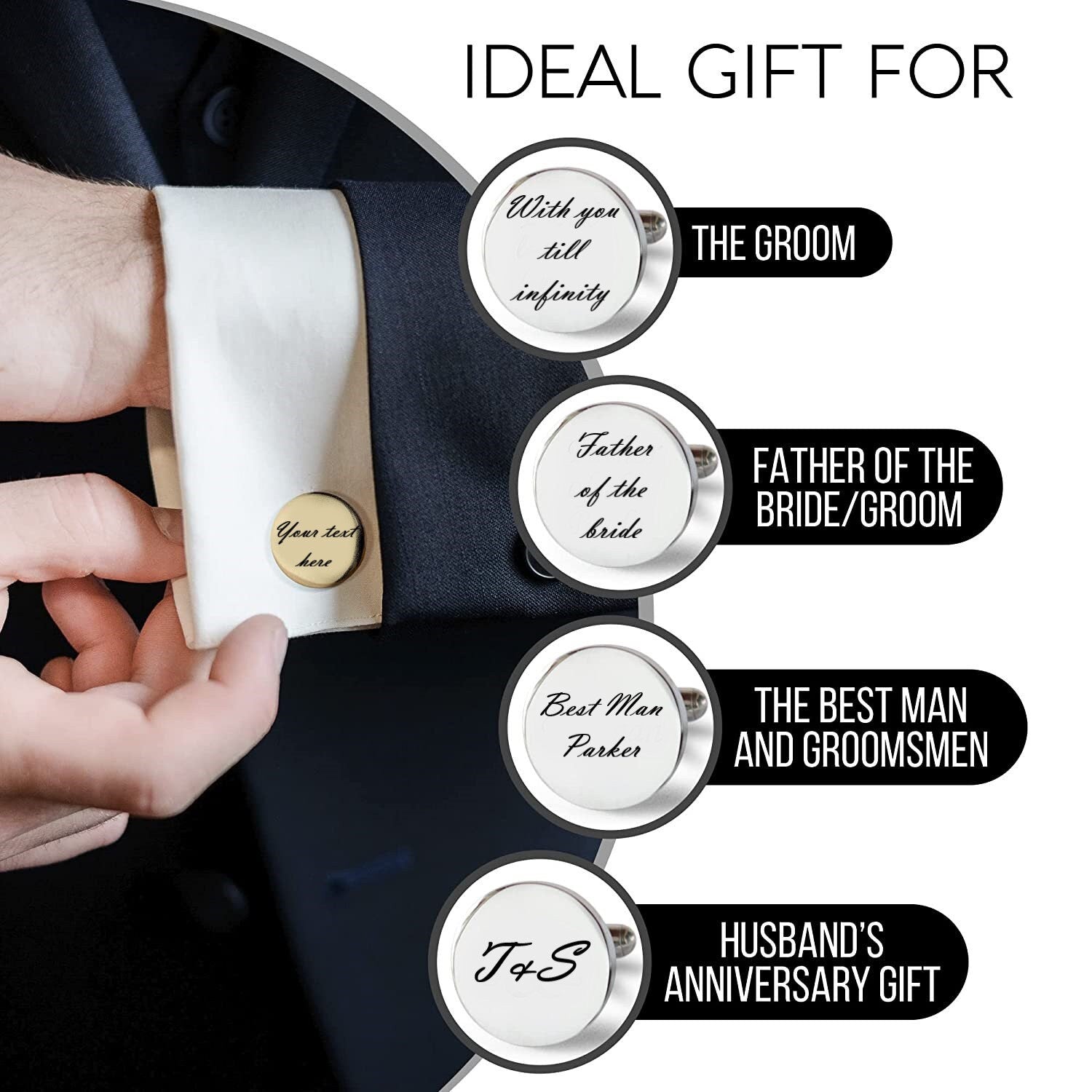 🎁 Personalized and custom engraved cufflinks to give as gift for any occasions such wedding gift, father or bride, groomsmen, and fathers day gift.