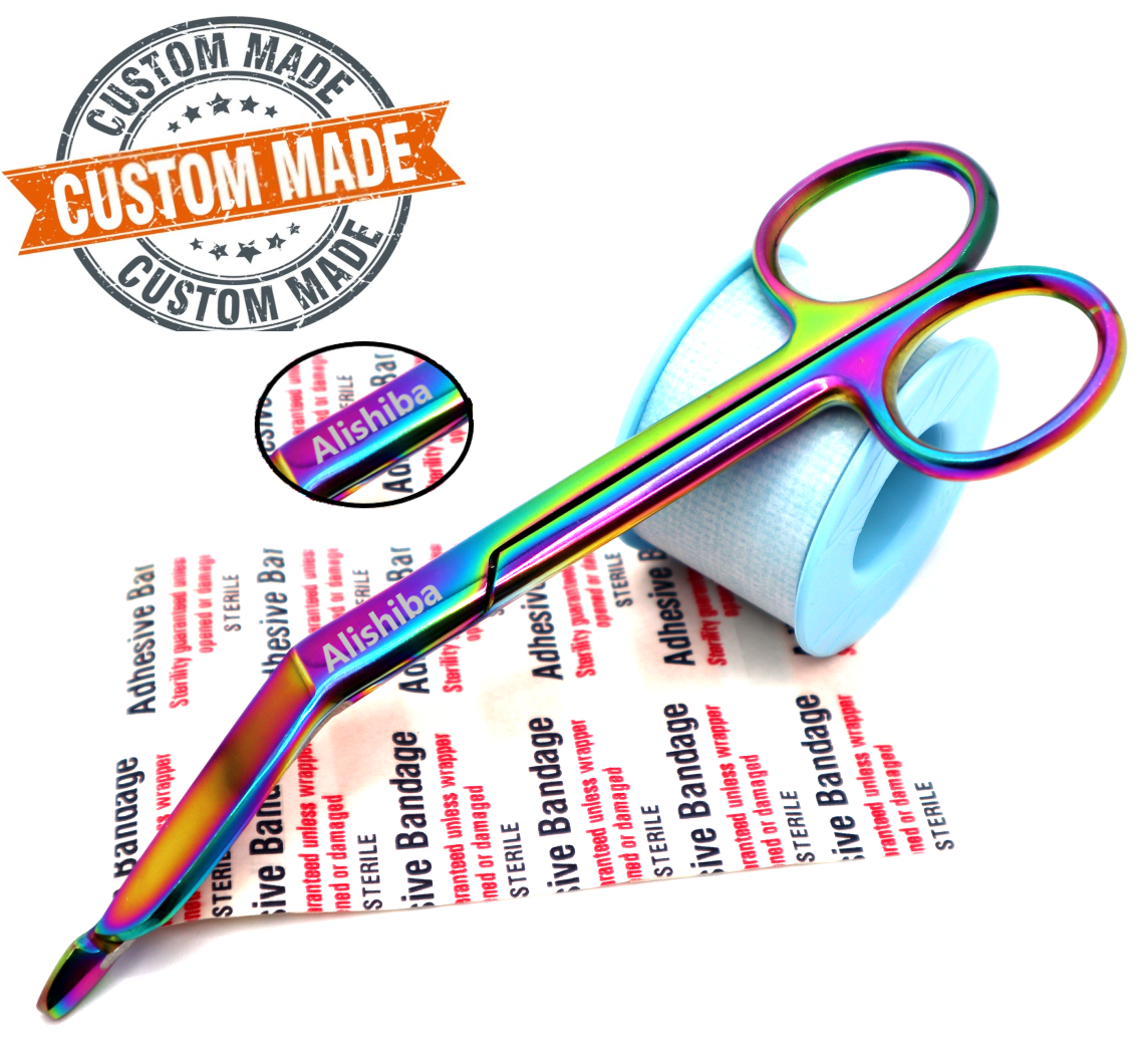 ✂️🌟 "Snip in Style! 🌟✂️ Meet the 5.5" laser-engraved custom bandage scissors, personalized with your name and splashed with vibrant multi-color! These aren’t just any scissors—they’re your new sidekick for tackling life’s little emergencies with a dash of humor and a rainbow twist. Perfect for the nurse who’s the life of the ward or anyone who believes in snipping with a smile. Say goodbye to boring and hello to bandage-cutting bliss with a personalized touch!"
