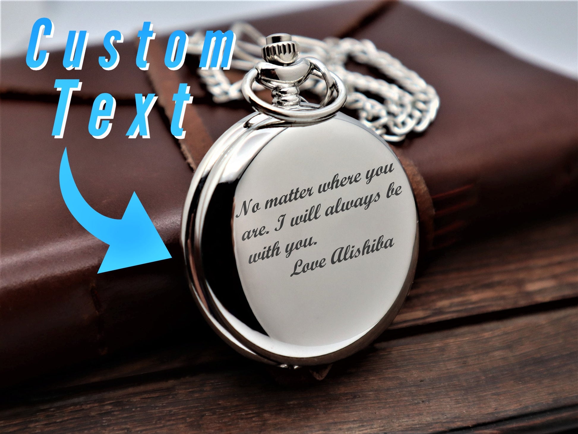 🎁 Looking for a gift that's both practical and sentimental? Our custom engraved pocket watch is the perfect choice. With its classic design and high-quality construction, this pocket watch is sure to become a treasured keepsake for years to come.