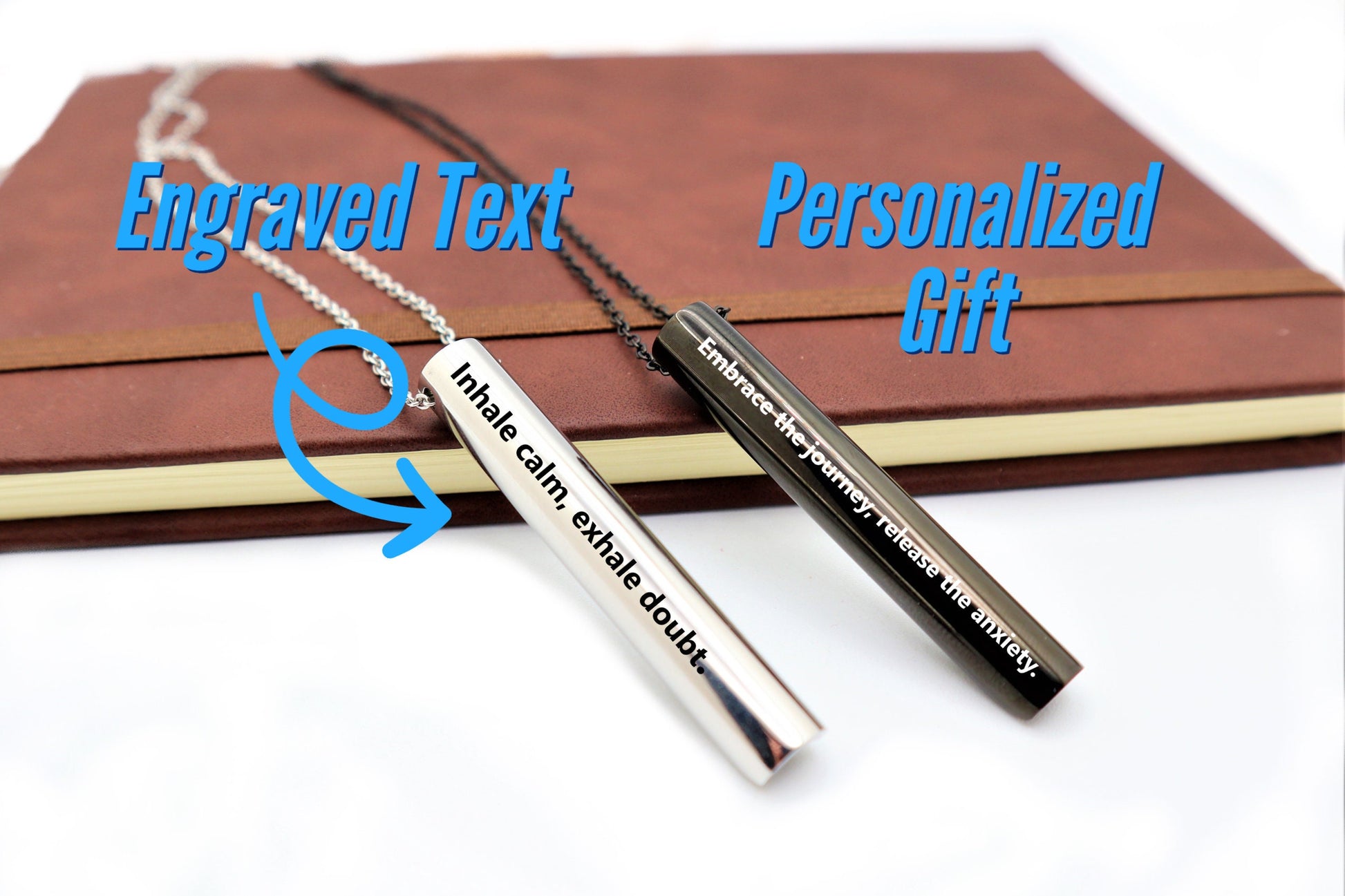 🌈 Whether you're treating yourself or gifting someone dear to you, our personalized laser engraved anxiety breathing necklace is a thoughtful and supportive choice. Each necklace is made to order, ensuring a customized experience that caters to your unique needs. Please provide your desired engraving details in the personalization section when placing your order.