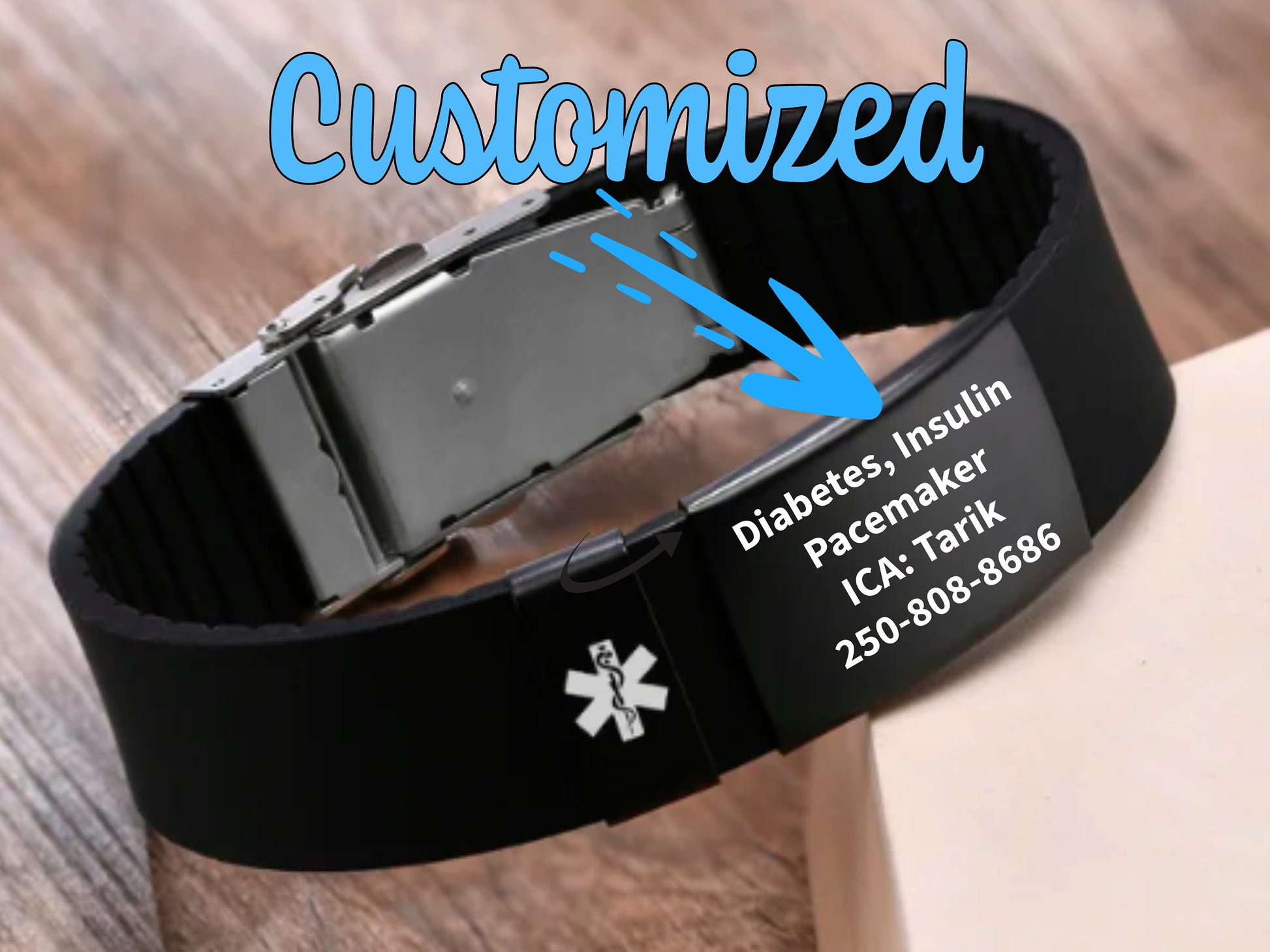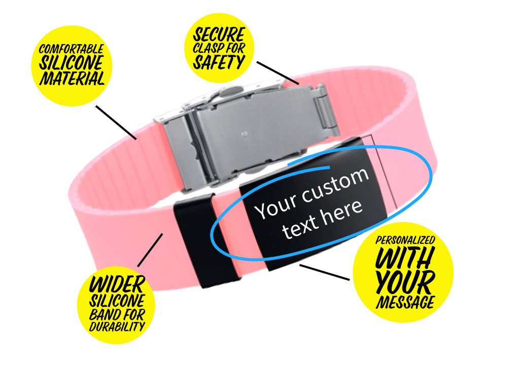 Custom Medical Alert Bracelet With A Silicone Band Personalized With Your In Case of Emergency Medical Information And Identification