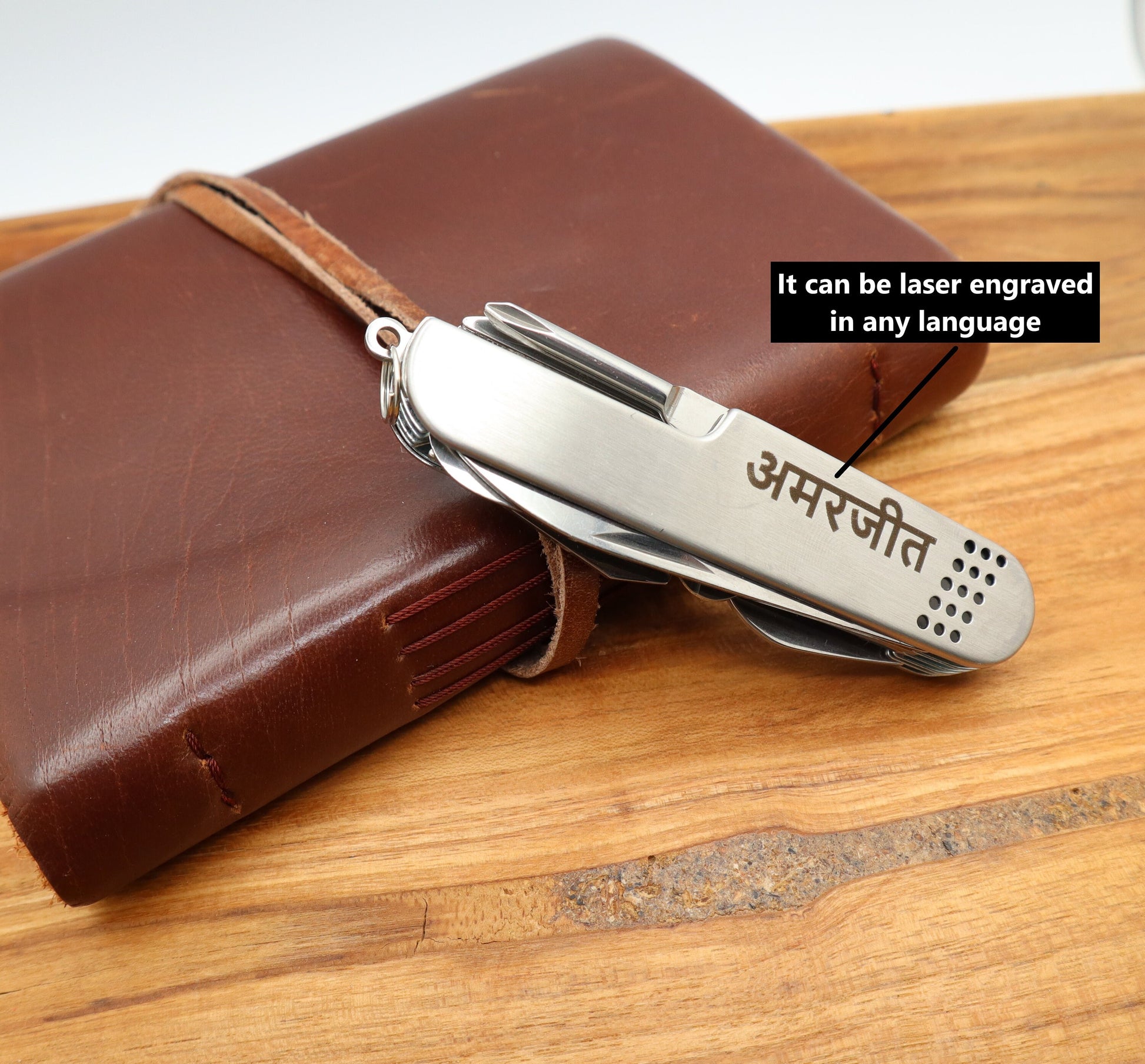 For over a century, this type of knife has been a trusted tool for adventurers, explorers, and everyday folks alike. And now you can make this iconic knife your own with our customizable option! Featuring a wide array of useful tools, including a blade, can opener, bottle opener, screwdriver, and more, this is a must-have for anyone who loves the outdoors or needs a reliable tool for everyday use. And with the option to engrave a name, date, or special message onto the sleek, ergonomic handle, this knife becomes a truly personalized and meaningful gift. Whether you're camping in the wilderness or tackling DIY projects around the house, it is the perfect tool for any job - and now it can be a unique and customized one as well!
