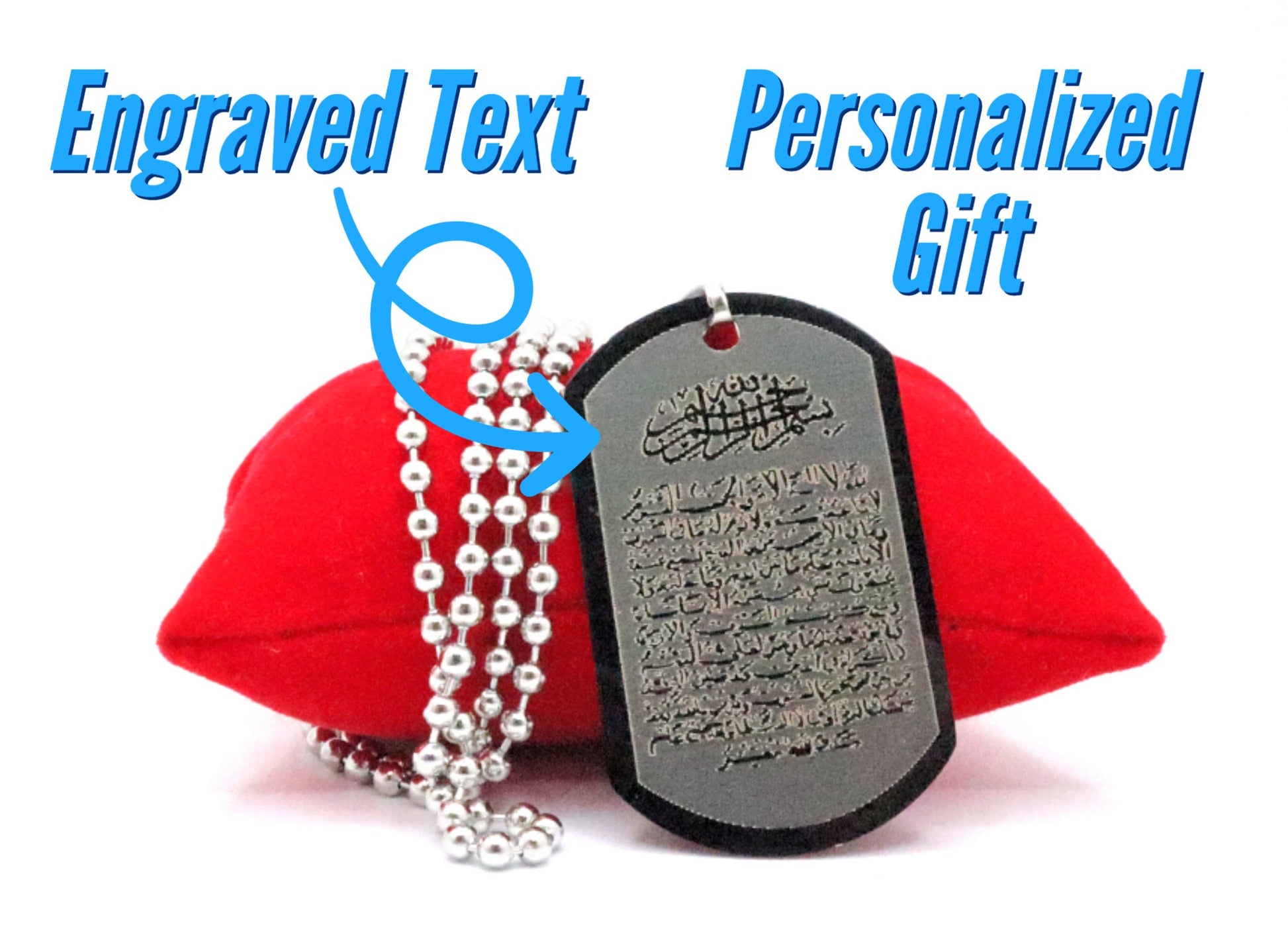 Personalized Allah Necklace Pendant With Custom Engraved Message and Ayatul Kursee To Give As Islamic Gifts For Special Occasions For Muslim
