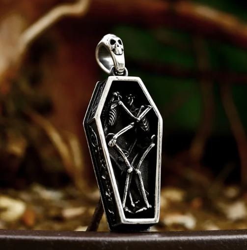 💀 Unique skull necklace with coffin skeleton design and retro treatment. The skull symbol represents wisdom, rebirth, good luck, immortality, vitality, strength and power.