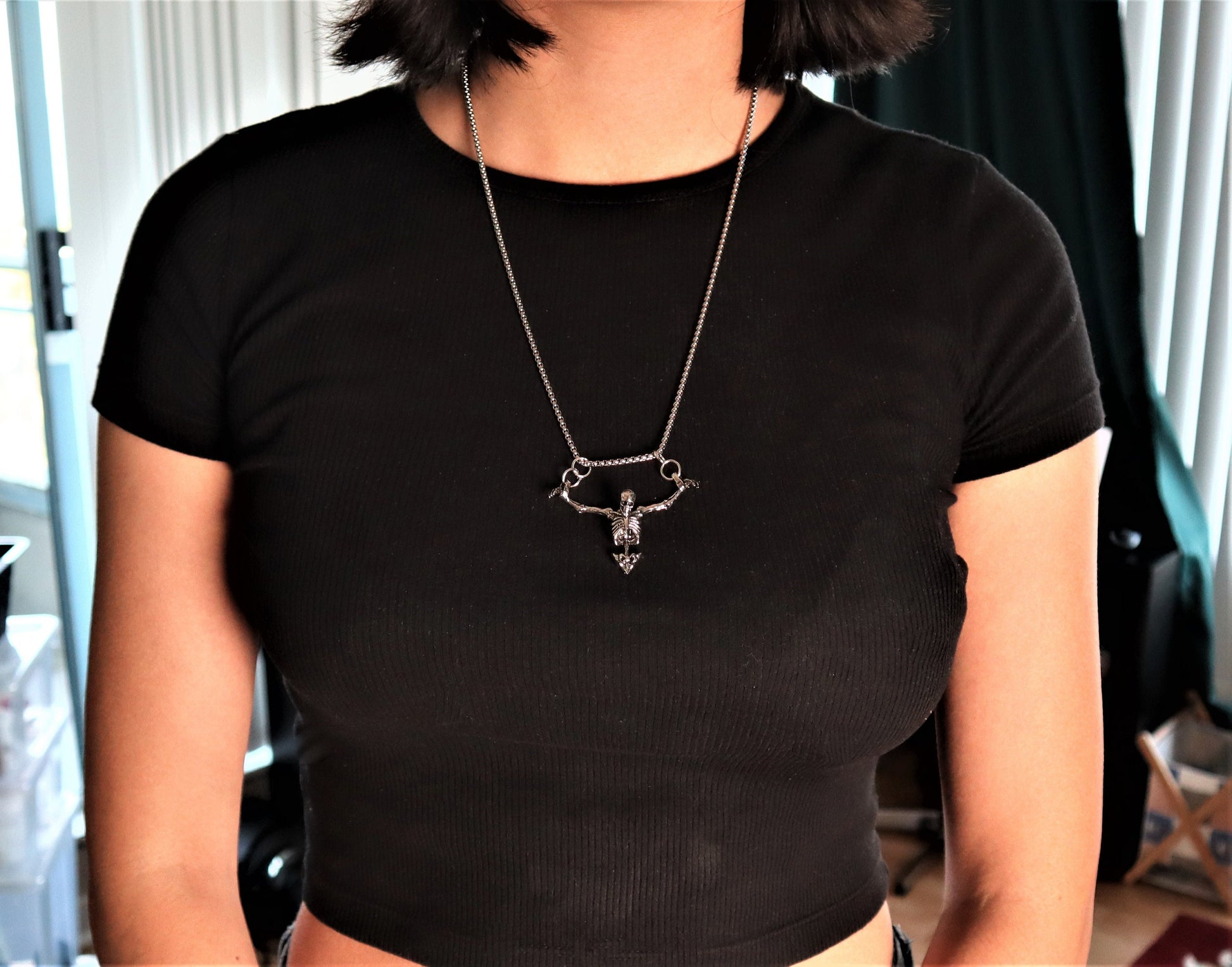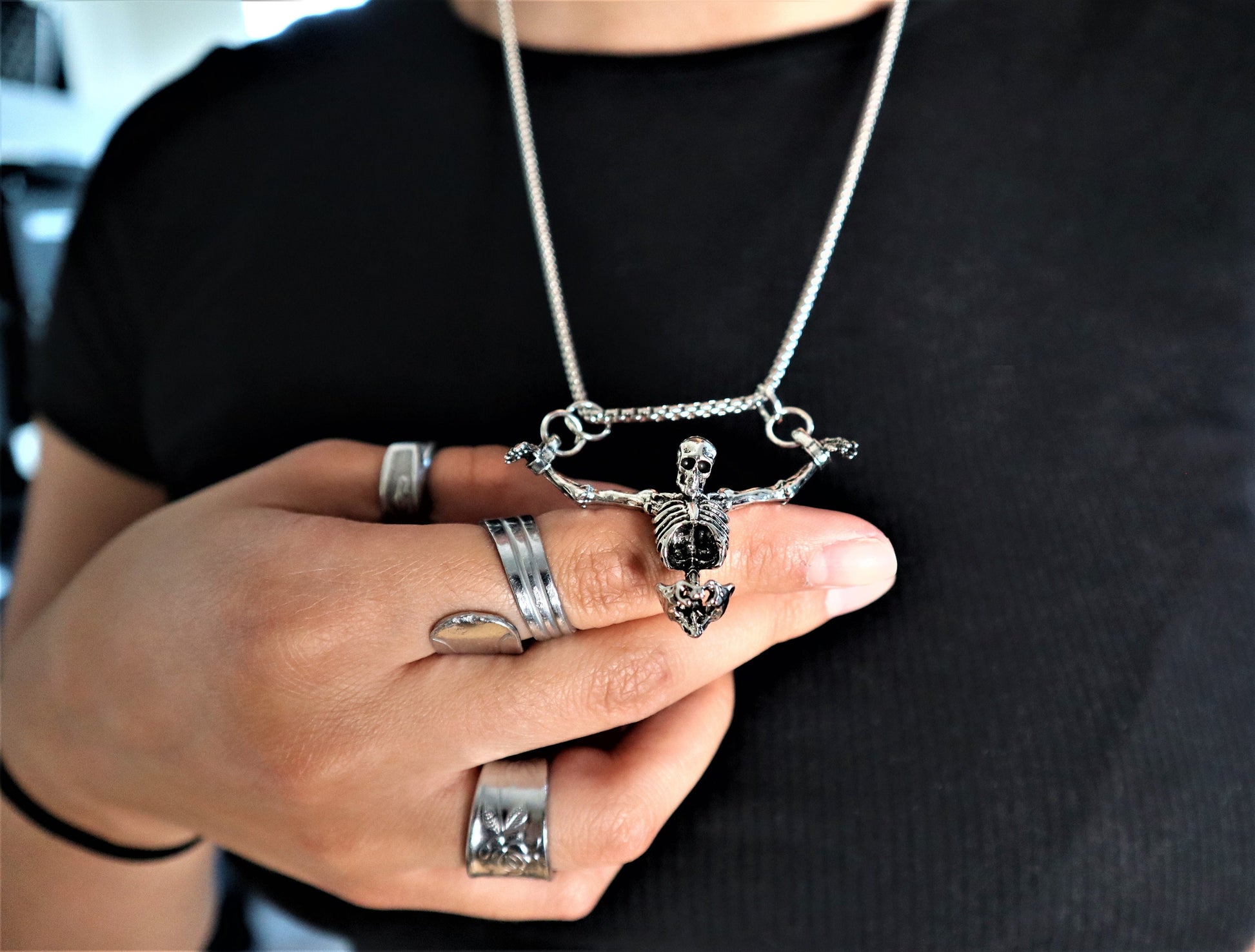 💀 Personalized Gothic Skull Chain Necklace With your name laser engraved on the back of the pendant.