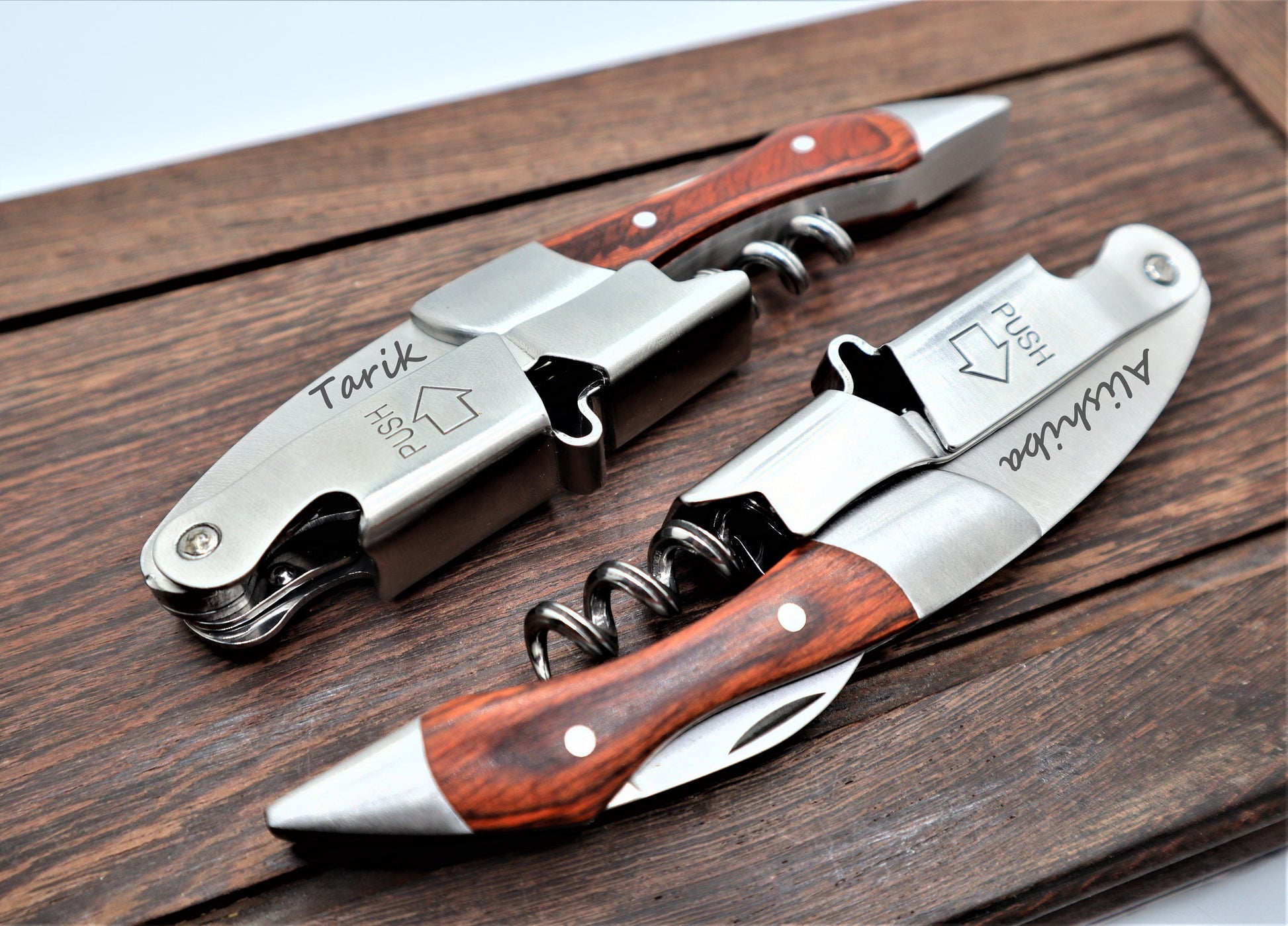 🥂 But what really sets our wine bottle opener apart is the ability to personalize it with your own name or initials. Whether you're looking for a one-of-a-kind gift or just want to add a touch of elegance to your wine drinking experience, our custom wine bottle opener is sure to impress.