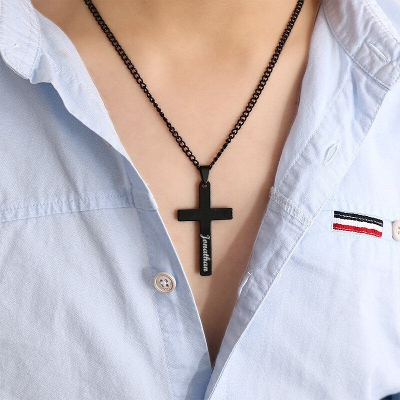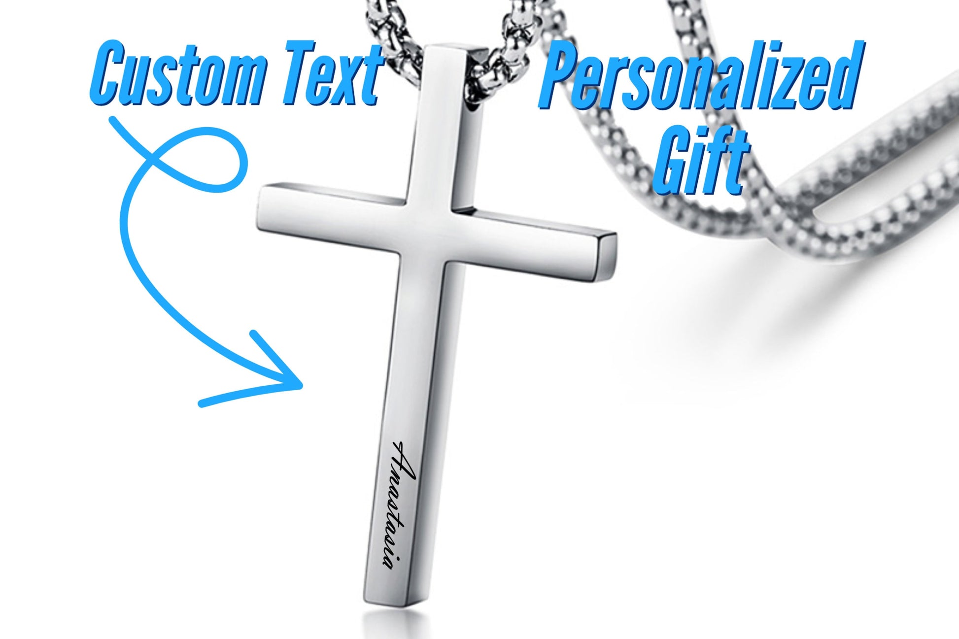 Personalized Cross Necklace With Your Custom Name For Men And Women, Engraved Cross Pendant Christening Baptism Gift For Boys And Girls