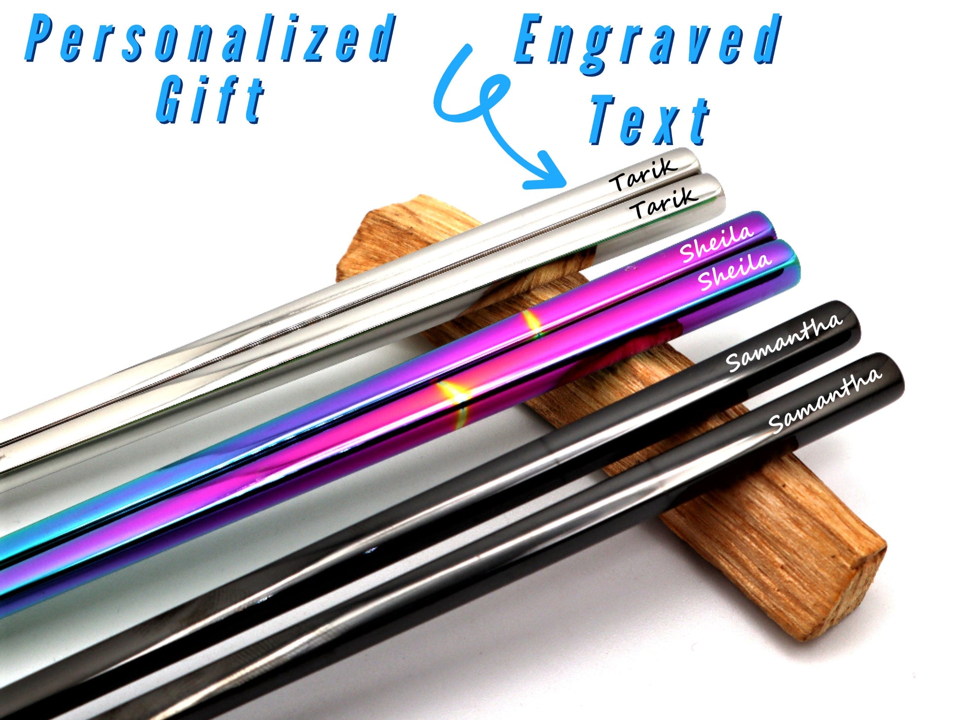 Personalized Custom Reusable Chopsticks Engraved With Your Name To Give As Gifts | Reusable Metal Chop Stick Korean Baguette Chinoise