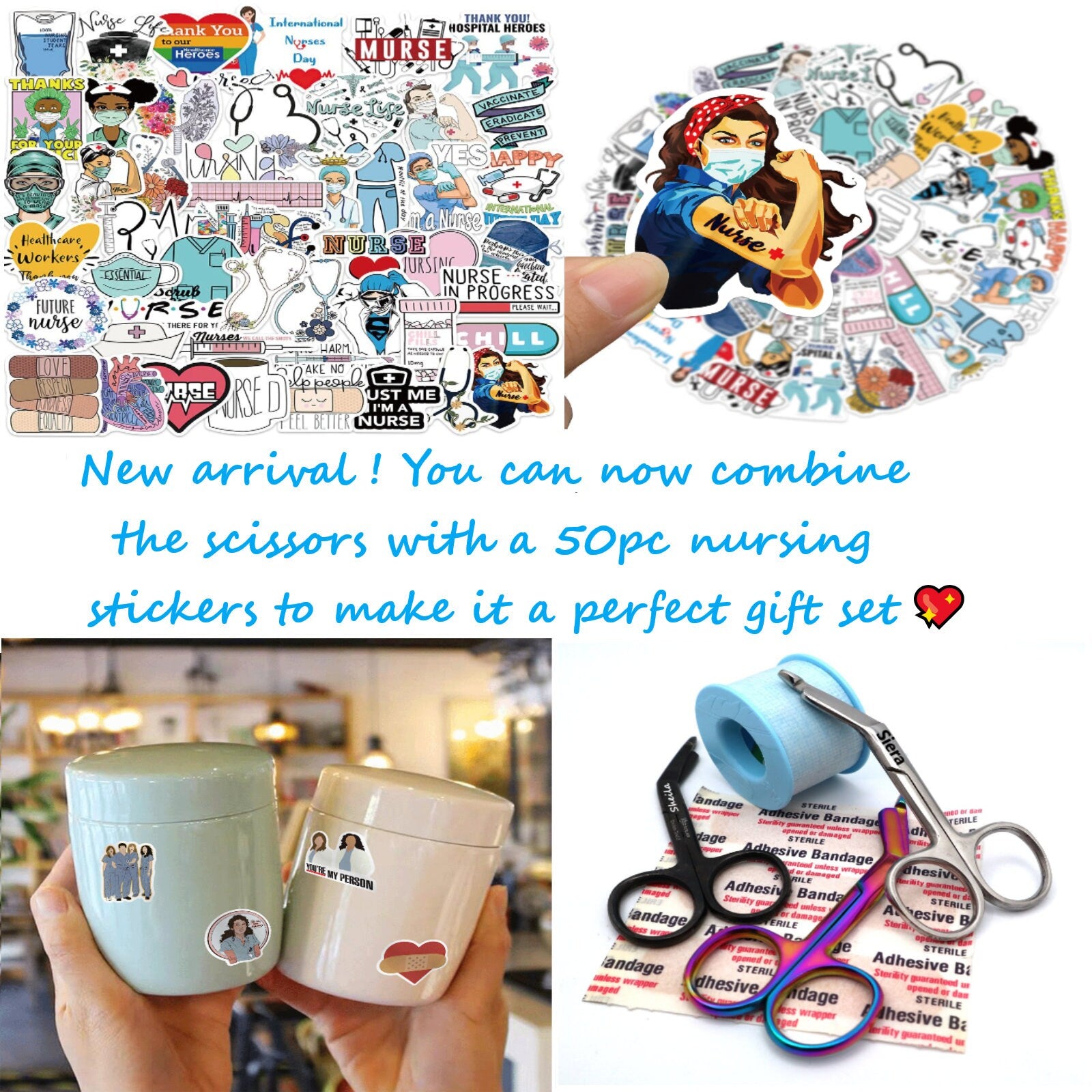 💖 We have 50 pcs all different "Nurse" related stickers in a single pack! Decorate on your journal planner, birthday gift, laptop, scrapbook, photo album, water bottle, fridge, luggage, skateboard, toolbox, pretty much anything you want!
